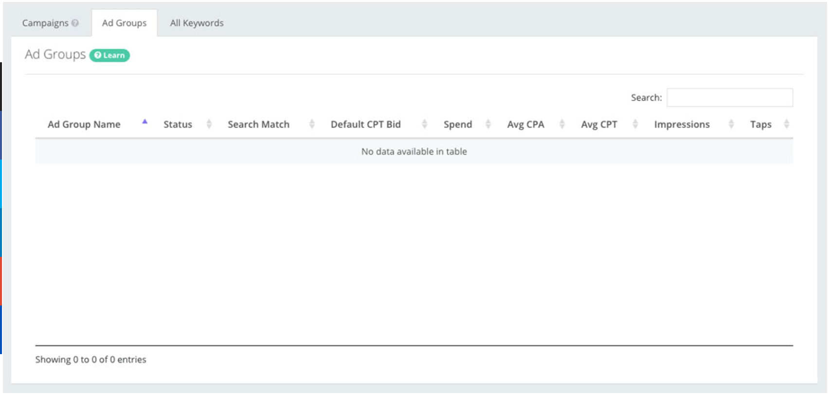 Mobile Action's UI solves for a few pain points given Apple's UI is prone to slow loading and errors, and also because advertisers must drill-down into a campaign to see ad groups and keywords, but can't see a groups/keywords across all campaigns.